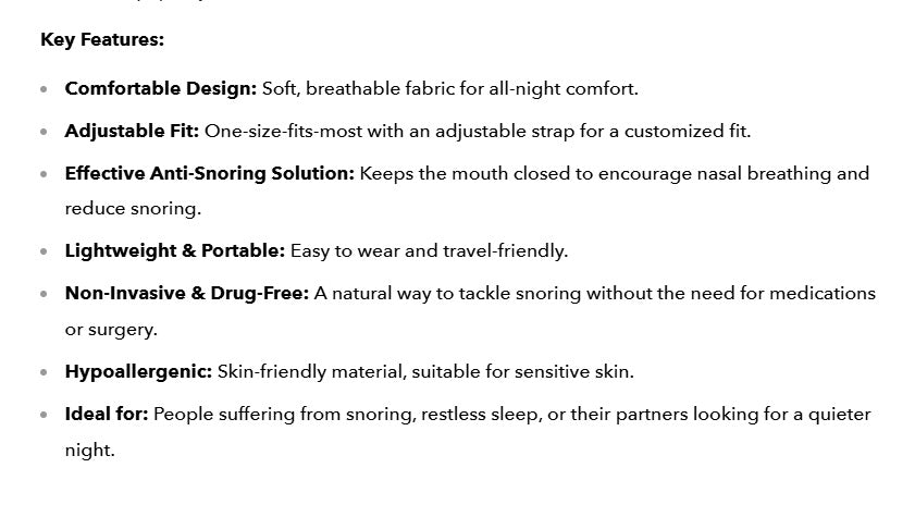 - Effective Anti-Snoring Solution: Keeps the mouth closed to encourage nasal breathing and reduce snoring.